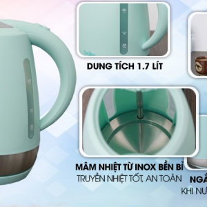 Bình đun siêu tốc Delites 1.7 lít ST17P03 Xanh
