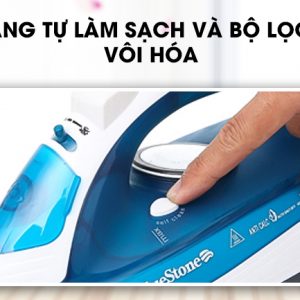 Nhờ đó hệ thống ủi hơi nước không lo cặn bẩn, tắc nghẽn đường dẫn và phun nước, đồng thời tránh các vệt ố vàng trên quần áo do chất bẩn tắc nghẽn gây nên. Bên cạnh đó trang bị tính năng tự động ngắt điện an toàn sử dụng, chức năng này sẽ tự động ngắt điện bàn ủi khi không sử dụng trong một lúc (30 giây ở vị trí nằm ngang, 8 phút ở vị trí thẳng đứng), đèn báo sẽ sáng hoặc có tiếng chuông báo hiệu bàn ủi đã tự động được ngắt điện, để bàn ủi nóng trở lại bạn chỉ cần nhấc bàn ủi lên và di chuyển nhẹ.