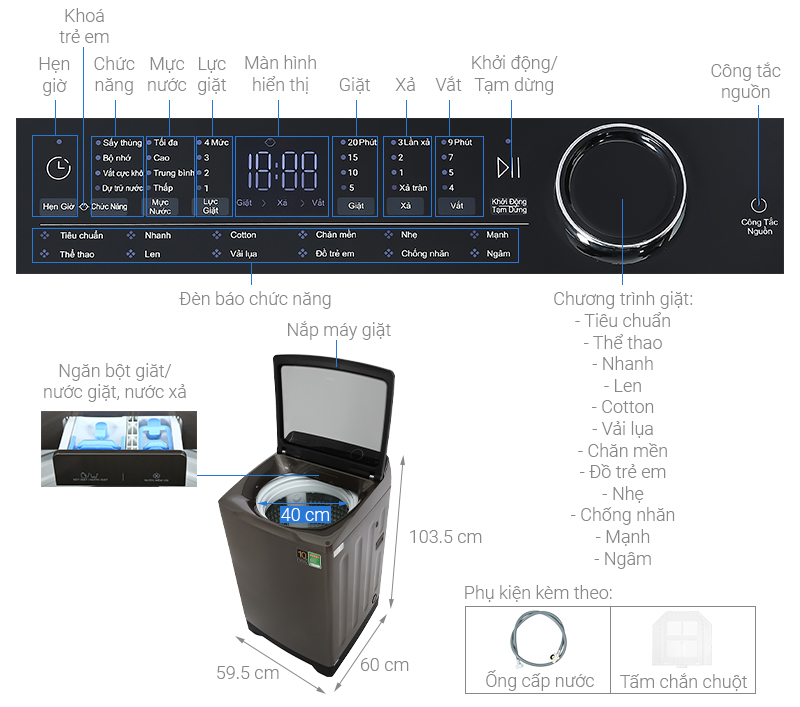 • Kèm theo máy có: Ống dẫn nước, Tấm chống chuột
