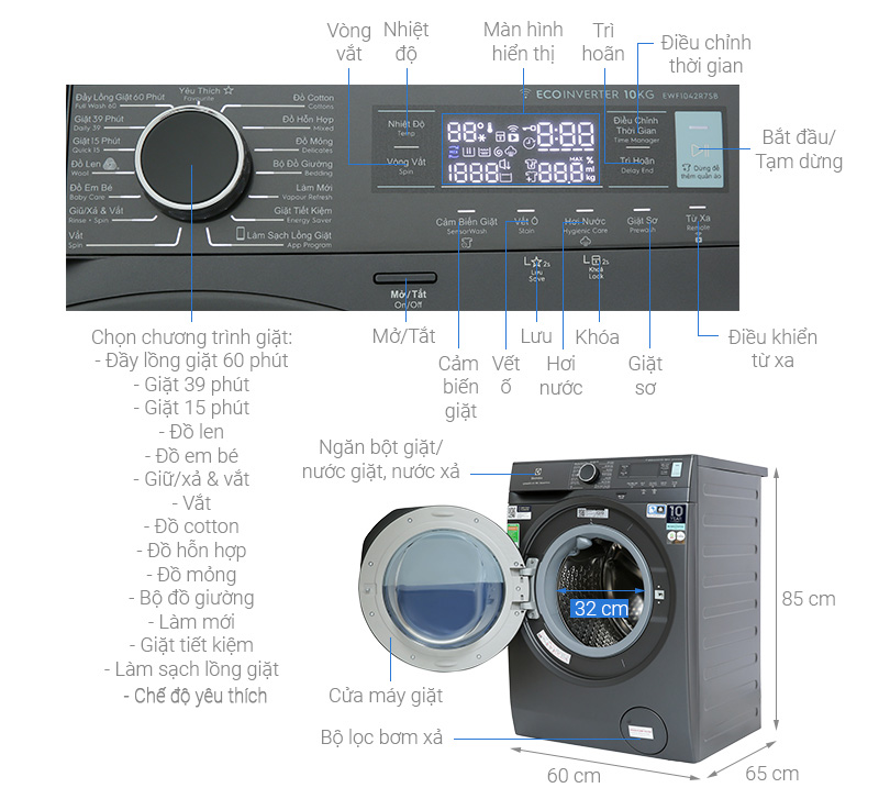 Tóm lại, máy giặt Electrolux Inverter 10 kg EWF1042R7SB đáp ứng tốt nhu cầu của gia đình bạn nhờ các công nghệ nổi bật như: Tiết kiệm điện nước hiệu quả với công nghệ Eco Inverter, diệt khuẩn nhờ công nghệ Hygienic Care, hòa tan bột giặt hoàn toàn nhờ hệ thống UltraMix, công nghệ Sensor Wash với cảm biến AI… Ngoài ra, máy còn có khối lượng giặt 10 Kg phù hợp với những gia đình có từ 5 – 7 thành viên.