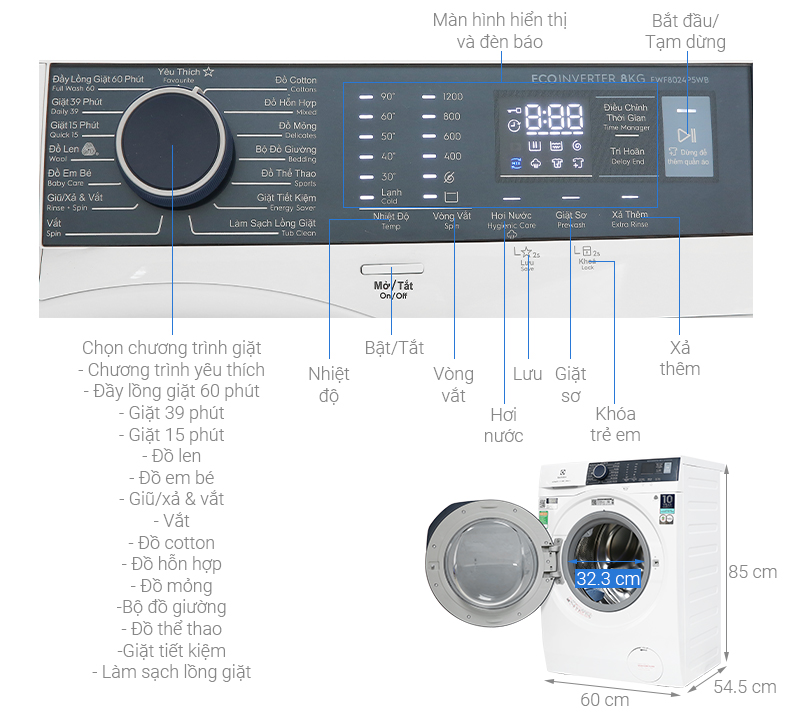 Tóm lại, máy giặt Electrolux EWF8024P5WB là sản phẩm với các chức năng tiện lợi như giặt hơi nước, giảm thiểu phai màu quần áo, dễ dàng thêm quần áo khi đang giặt, tích hợp 15 chương trình giặt giũ,… Sản phẩm này phù hợp với các gia đình có từ 3 – 5 thành viên.