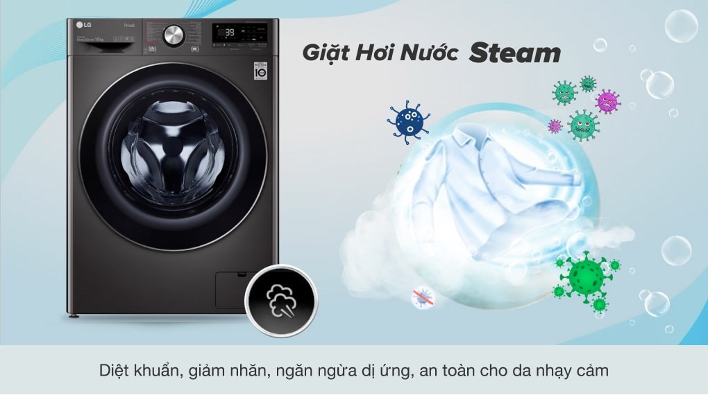 Diệt khuẩn ngăn ngừa dị ứng, làm mềm vải với bộ đôi công nghệ giặt hơi nước Steam và giặt nước nóng