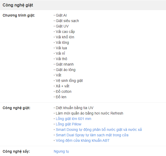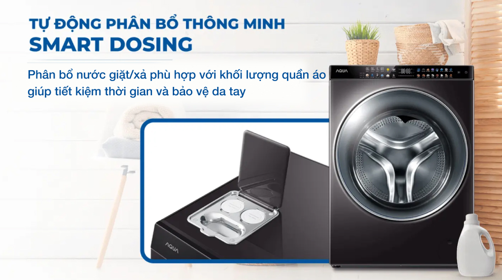 – Smart Dosing, công nghệ này có khả năng tự động cân chỉnh một lượng nước giặt/xả tương thích với khối lượng đồ đã bỏ vào lồng giặt. Nhờ đó, giúp bạn giặt quần áo thuận tiện, không cần châm nước giặt, nước xả thường xuyên, tránh lãng phí điện, nước.