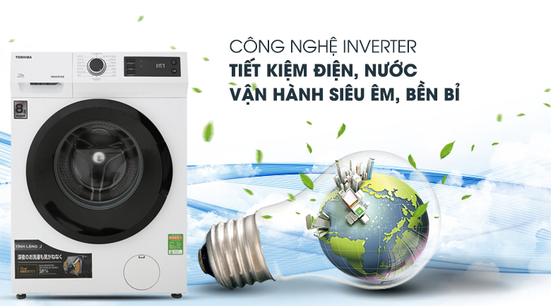 Máy giặt Toshiba Inverter được trang bị công nghệ Real Inverter giúp nâng cao hiệu quả tiết kiệm điện năng nhưng vẫn đảm bảo máy giặt vận hành êm ái, ổn định.