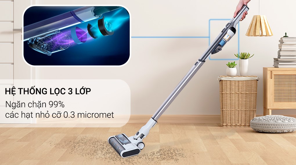 Tích hợp hệ thống lọc 3 lớp ngăn chặn đến 99% các hạt nhỏ cỡ 0.3 micromet, đảm bảo hiệu suất máy tối ưu