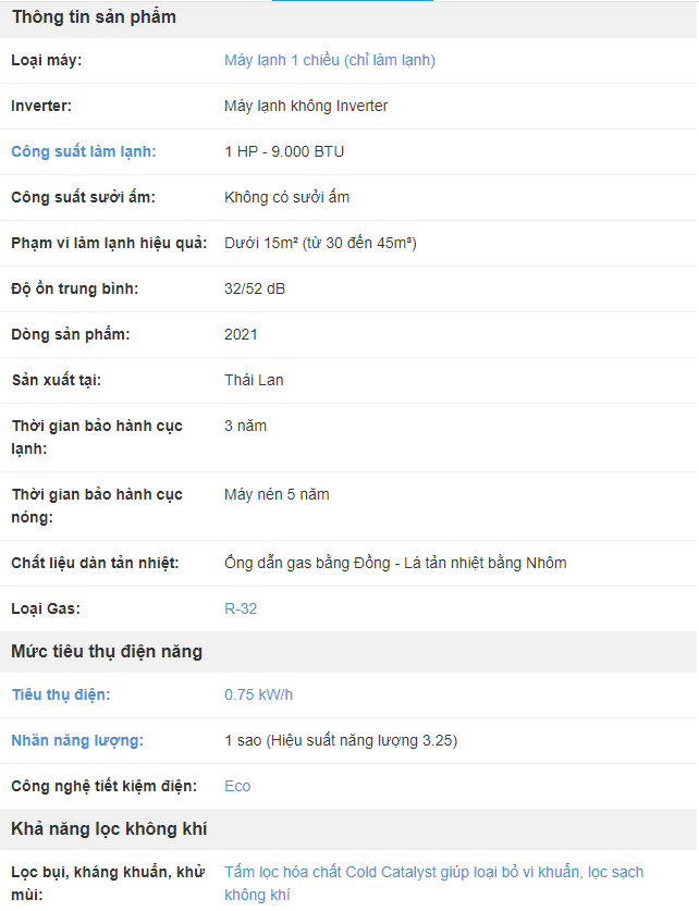 – Công suất làm lạnh 1 HP, cung cấp nhiệt độ làm lạnh tối ưu cho không gian có diện tích dưới 15m² (từ 30 đến 45m³).