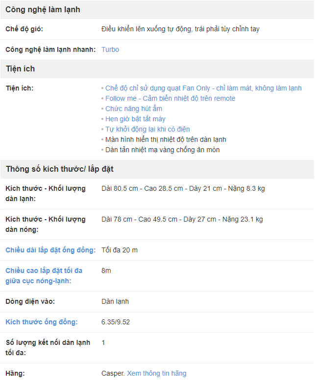 Dòng máy lạnh Casper này với thiết kế thanh lịch, tích hợp sẵn các công nghệ làm lạnh Turbo, chức năng hút ẩm… cùng nhiều tiện ích khác như tự hẹn giờ, cơ chế bảo vệ an toàn… Sản phẩm sẽ là một sự lựa chọn đáng cân nhắc cho gia đình bạn trong thời gian tới.