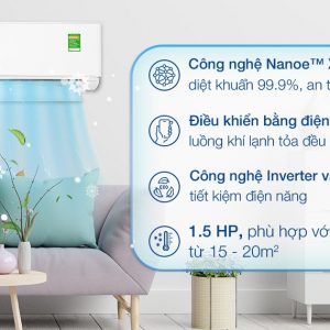 Tóm lại, sản phẩm này có nhiều công nghệ như Inverter, lọc không khí, chế độ Eco, chức năng Follow me, chức năng hẹn giờ, cơ chế bảo vệ an toàn kép phát hiện rò rỉ thông minh, làm lạnh nhanh,… và công suất 1.5 HP nên phù hợp với diện tích từ 15 – 20m² (từ 40 đến 60m³).