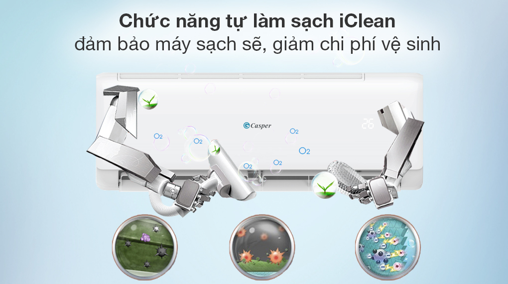 – Chức năng iClean: thiết bị sẽ đóng băng dàn lạnh, sau đó rã đông, cuốn trôi đi chất bẩn rồi mới làm khô các bộ phận bên trong dàn lạnh, ngăn ngừa vi khuẩn, nấm mốc hình thành và phát triển. Nhờ đó, giúp duy trì khả năng làm lạnh tốt, giảm chi phí vệ sinh máy.