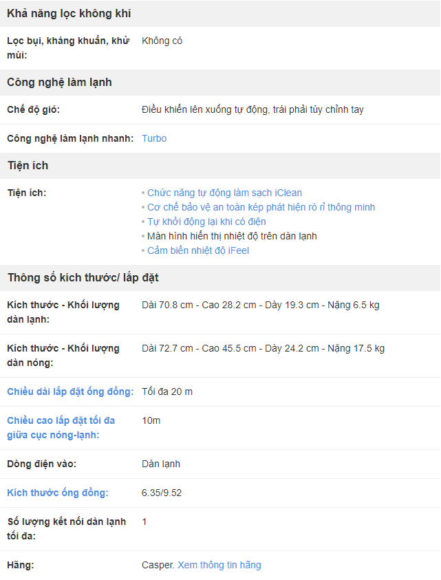 – Chức năng Turbo khi khởi động, máy lạnh Casper sẽ vận hành ở mức công suất lớn để nhanh chóng làm lạnh không gian phòng đến mức nhiệt cài đặt trong thời gian chỉ tầm 20 đến 30 phút.