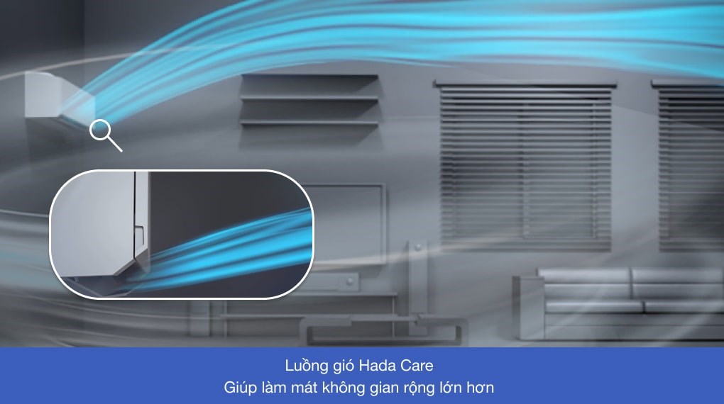 Công nghệ Hada Care cho phép máy lạnh tạo ra những luồng gió giúp hơi lạnh thổi hướng lên cao và xa, đồng thời làm mát không gian rộng, đều hơn. Nhờ vậy, tránh được tình trạng hơi lạnh thổi trực tiếp vào người, mang đến cảm giác dễ chịu và giữ độ ẩm cho làn da, bảo vệ sức khỏe cho gia đình được tốt hơn.
