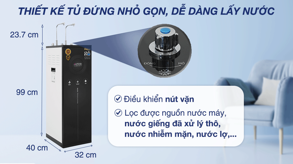– Điều khiển nút vặn, lấy nước dễ dàng.