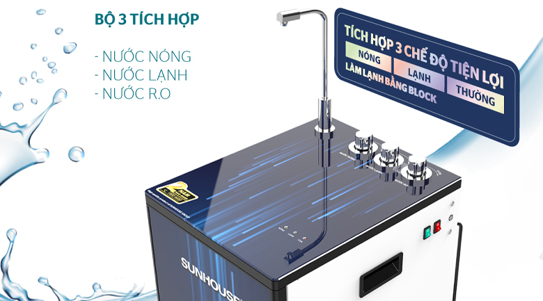 Tích hợp 3 chế độ nước vô cùng tiện lợi. Chỉ với thao tác chuyển đổi đơn giản, bạn đã có thể sử dụng nguồn nước an toàn và phù hợp với nhu cầu của mình.