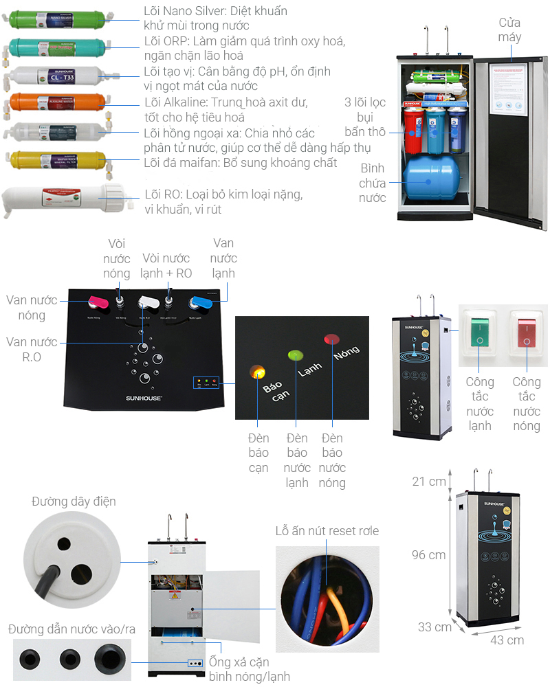 – Lõi Nano Silver (Nano Bạc): Diệt khuẩn, khử mùi, tạo vị ngọt tự nhiên cho nước.