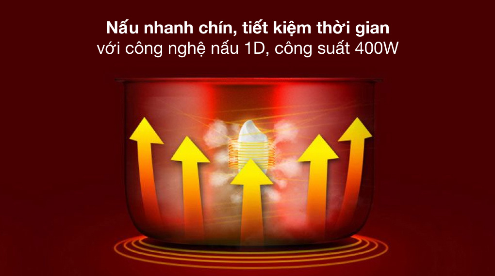 Nồi cơm điện AVA hoạt động với công suất lớn 400W, công nghệ nấu 1D cho cơm chín nhanh, tiết kiệm thời gian hiệu quả