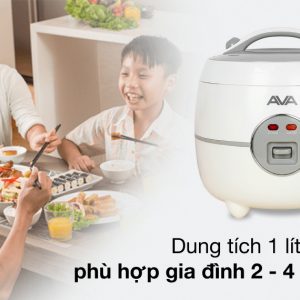 Nồi cơm điện nắp gài AVA 1 lít JRC-100P thiết kế màu sắc nhã nhặn, nấu cơm chín nhanh tiết kiệm thời gian, phục vụ tốt khẩu phần cơm cho 2 – 4 người.