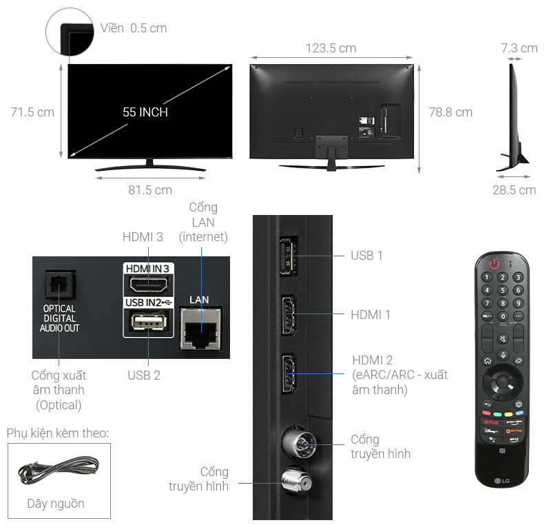 – Smart Tivi NanoCell LG 4K 55 inch 55NANO76SQA sở hữu màn hình 55 inch cùng thiết kế thanh mảnh, màn hình phẳng với viền siêu mỏng tạo khung hình mở rộng đầy cuốn hút khi trải nghiệm.