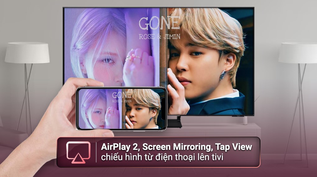 – Trình chiếu hình ảnh, video lên màn hình tivi qua tính năng AirPlay 2 (iPhone), TapView (Samsung) hay Screen Mirroring.