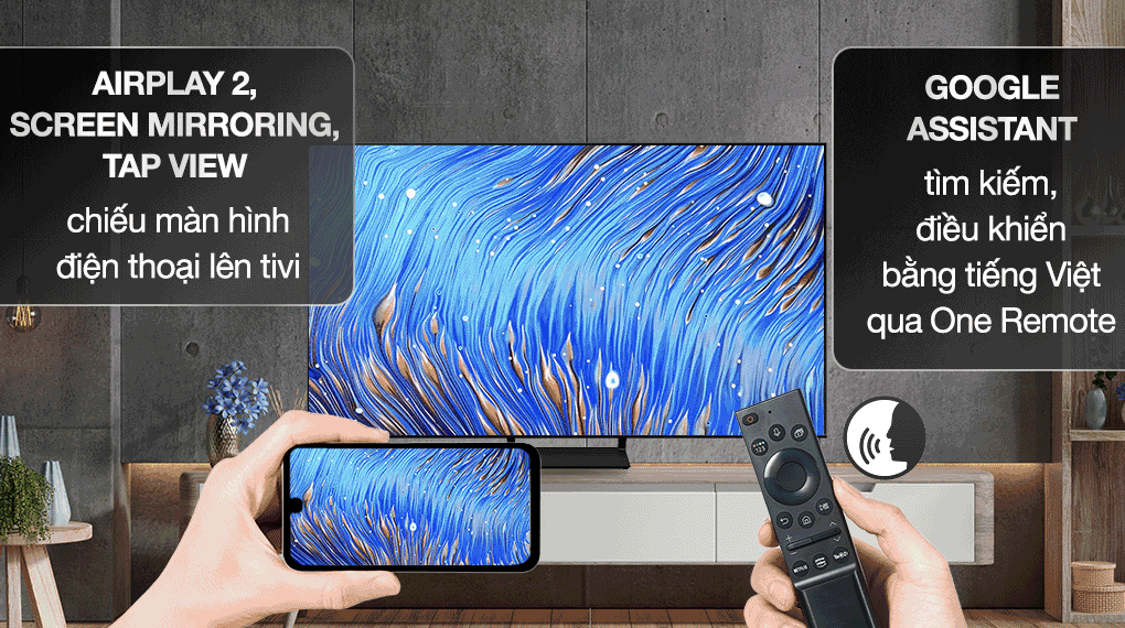 – Sử dụng giọng nói để điều khiển tivi Samsung với trợ lý ảo Google Assistant (hỗ trợ tiếng Việt) hoặc Bixby (chưa hỗ trợ tiếng Việt).