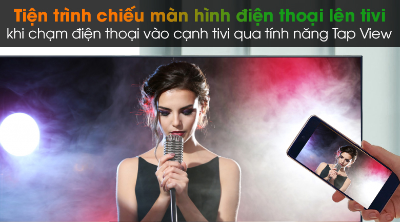 Bên cạnh đó, Tap View lại truyền tín hiệu từ điện thoại lên tivi nhanh chóng, bạn có thể thưởng thức ngay bộ phim đang xem trong tích tắc chỉ qua thao tác chạm điện thoại vào cạnh viền tivi.