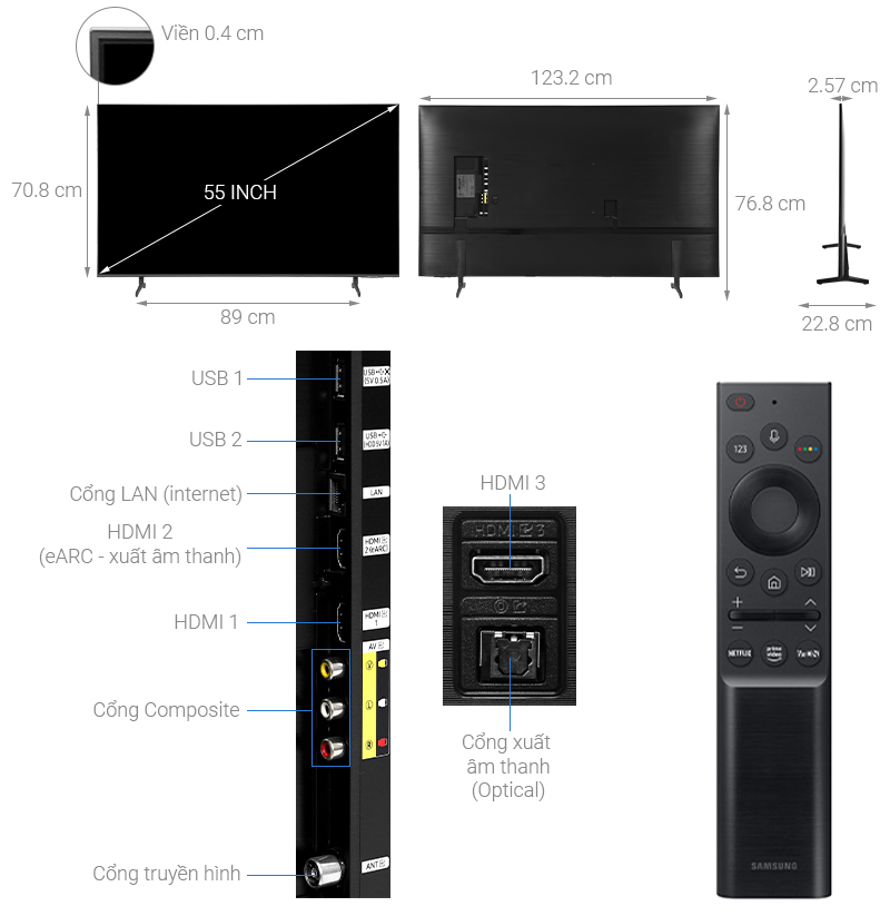 - Các công nghệ khác: Adaptive SoundQ-Symphony kết hợp loa tivi với loa thanh