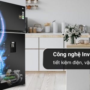 Chiếc tủ lạnh LG Inverter có dung tích 374 lít, thiết kế ngăn đá trên, màu đen và có ngăn lấy nước ngoài. Là sản phẩm tiết kiệm điện nhờ công nghệ Inverter. Tích hợp thêm công nghệ Door Cooling làm lạnh từ cánh cửa tủ giúp hơi lạnh đều tại mọi vị trí.