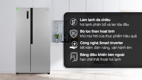 Tủ lạnh LG Inverter 519 lít GR-B256JDS thuộc dòng tủ lạnh side by side được trang bị công nghệ Smart Inverter giúp tiết kiệm điện năng. Bên cạnh đó, công nghệ làm lạnh đa chiều mang hơi lạnh lan tỏa khắp các ngăn.