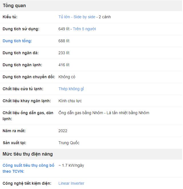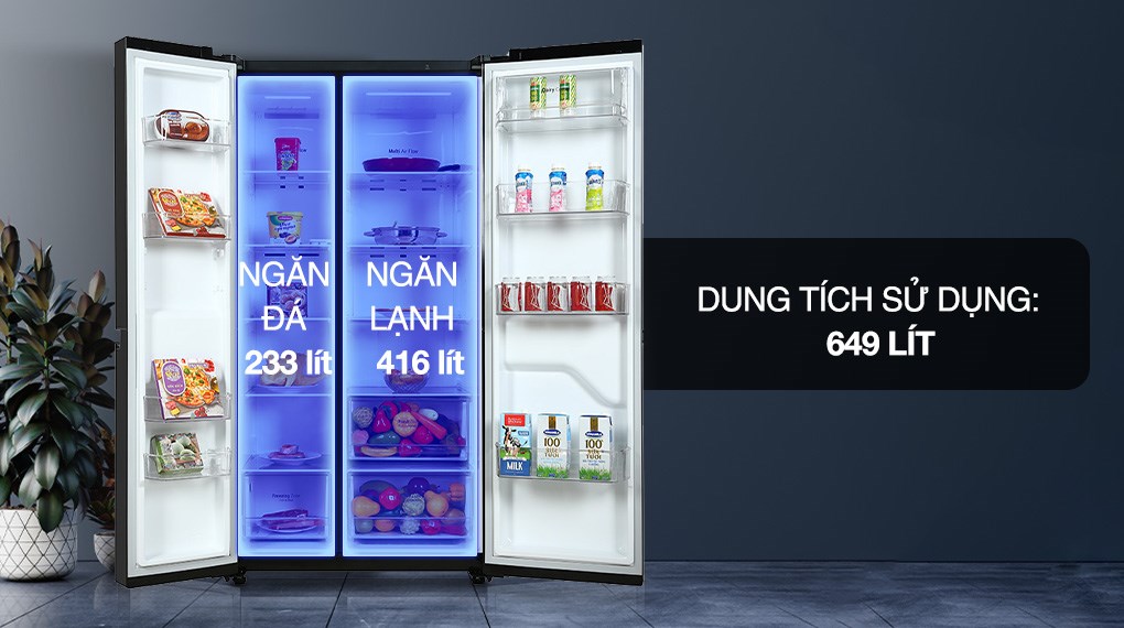 – Dung tích 649 lít phù hợp cho nhu cầu bảo quản thực phẩm của gia đình từ 5 thành viên trở lên.