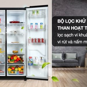 – Đây là mẫu tủ lạnh Side by side có chất liệu cửa tủ được làm từ thép không gỉ với màu đen nhám sang trọng, đồng thời hạn chế tình trạng bị bám vân tay.