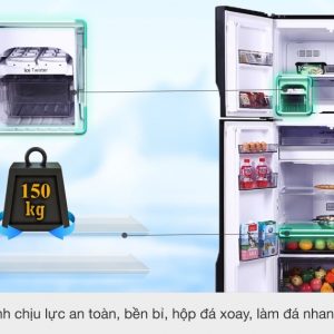 Sản phẩm có dung tích ngăn lạnh là 394 lít và ngăn đá 156 lít nên phù hợp lưu trữ thực phẩm cho hộ gia đình từ 4 – 5 người.