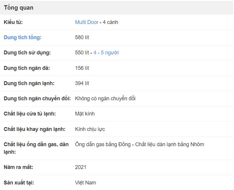 Dung tích 550 lít phù hợp cho gia đình từ 4 – 5 người