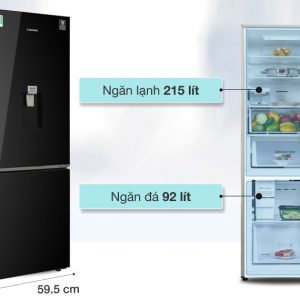 Tủ lạnh có dung tích ngăn lạnh 215 lít và ngăn đá 92 lít, phù hợp đựng thực phẩm cho gia đình từ 3 – 4 người.