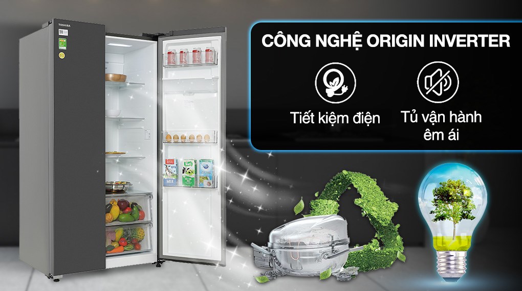 Công nghệ Origin Inverter: Nhờ kết hợp máy nén Inverter và quạt Inverter, công nghệ Origin Inverter có khả năng duy trì độ lạnh ổn định bên trong tủ, đồng thời sử dụng tiết kiệm điện và hỗ trợ tủ lạnh Toshiba 596 lít này vận hành êm ái cũng như giảm thiểu tiếng ồn hiệu quả trong suốt quá trình hoạt động.
