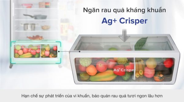 Ngăn rau quả trên chiếc tủ lạnh Toshiba Inverter ngoài khả năng duy trì tốt độ ẩm để bảo quản tối ưu cho rau củ còn có khả năng kháng khuẩn nhờ các phân tử Ag bên trong ngăn chứa, giữ cho rau củ quả tươi ngon lâu mà vẫn còn nguyên hàm lượng dinh dưỡng như ban đầu.